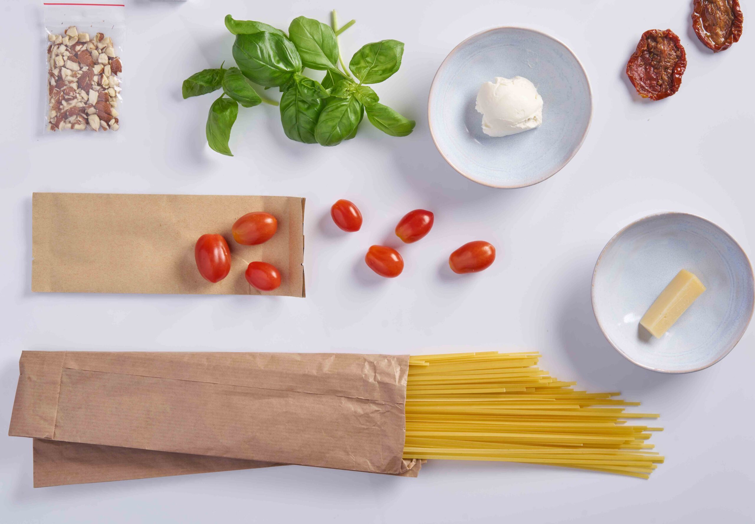يجب أن تحتوي هذه المنتجات التي تعتمد على التوصيل على عبوات لحفظ المكونات - على الأقل علبة واحدة، ولكن في كثير من الأحيان، يجب أن تحتوي على عبوات فردية لكل مكون مع إمكانية تبطينها وأكياس الثلج وبطاقات الوصفات وغيرها.