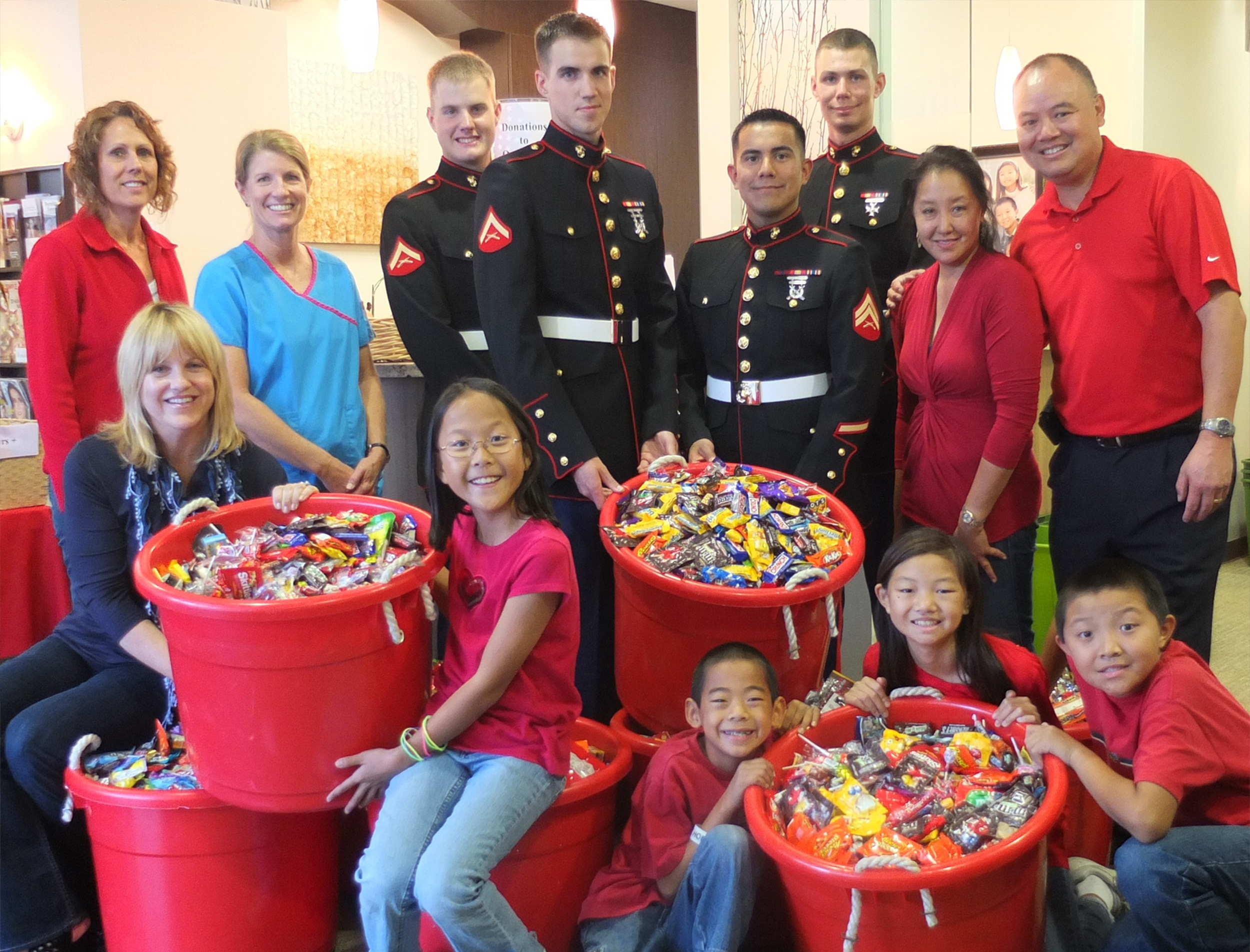 - Businesses (dentist offices, grocery stores, etc.) collect excess candy and ship it to troops overseas. Participating businesses are asked to offer something in exchange for the candy (common example: dentist gives the kids a toothbrush for candy donation)