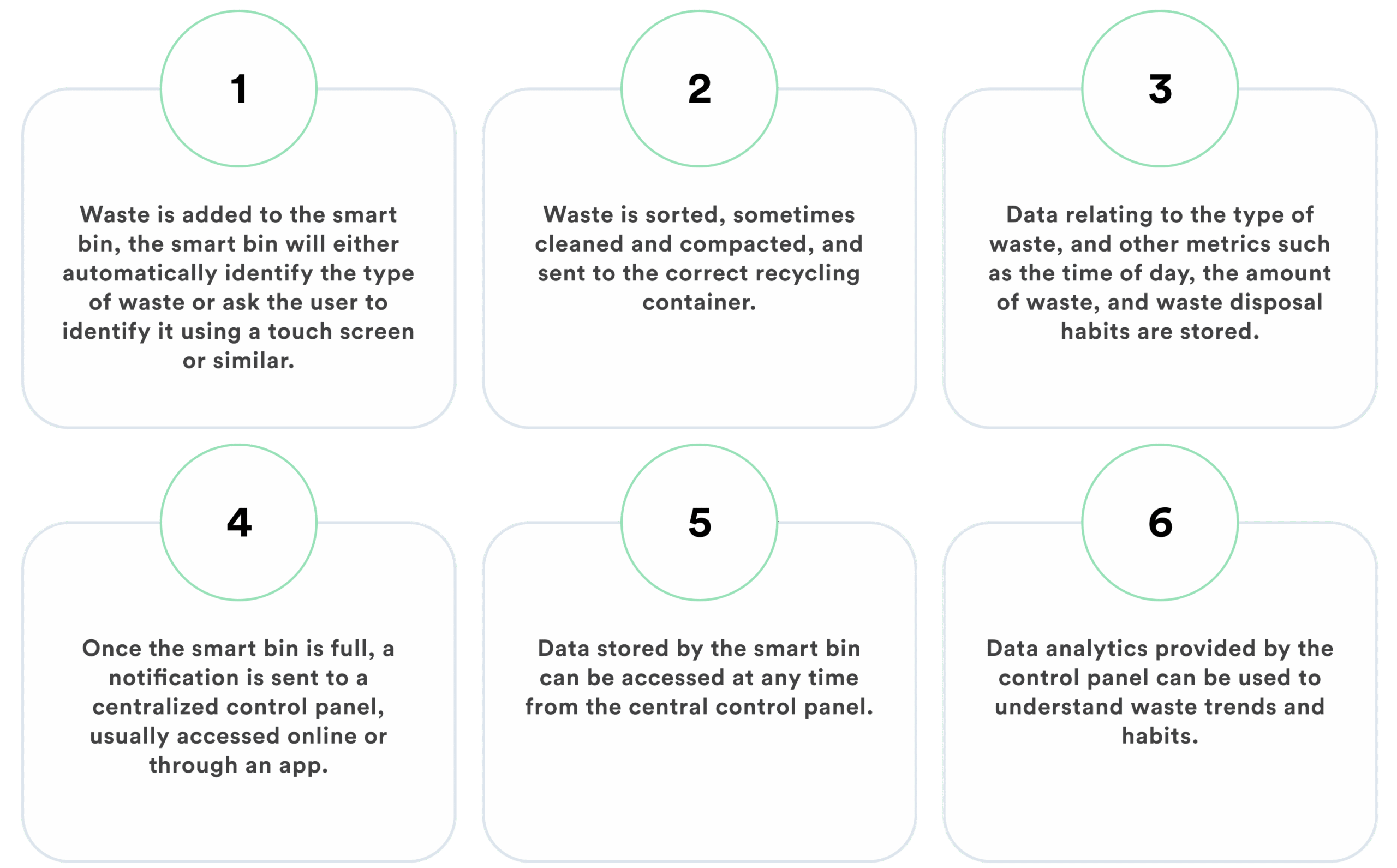 Today, there is a range of different smart bins available, each with a different set of features that enhance functionality over that of a conventional trash can. However, broadly speaking, most smart bins work in the same way.