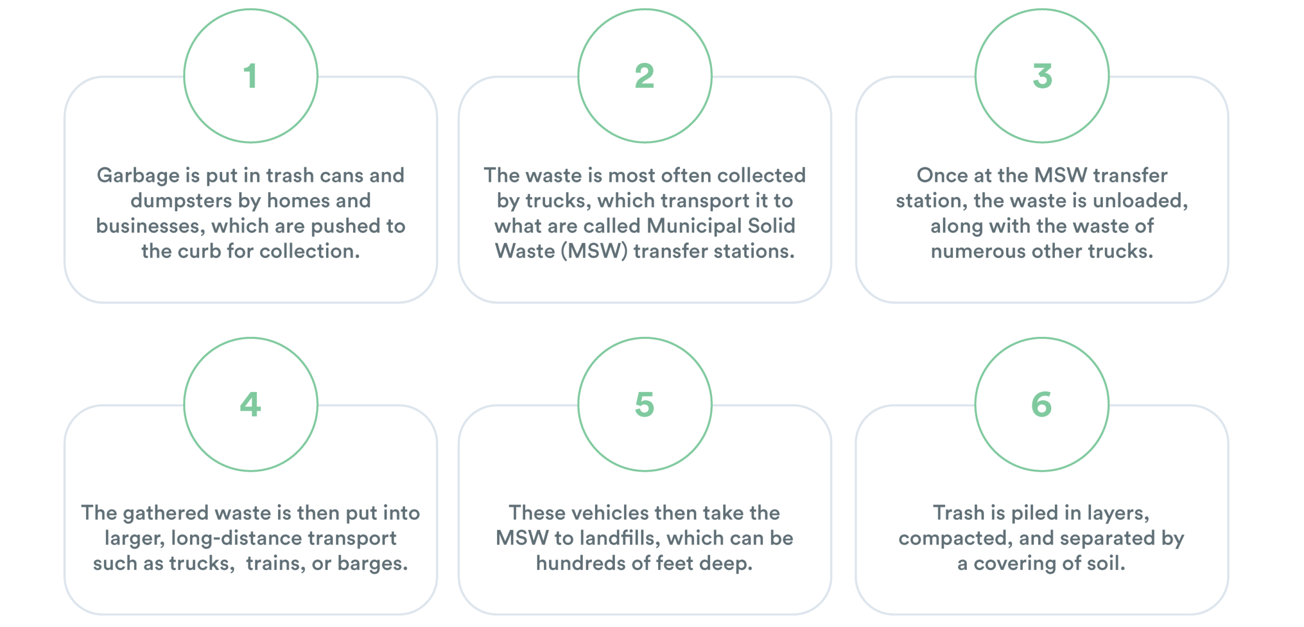 Por último, están los vertederos municipales de residuos sólidos (RSU), que se ocupan de los residuos domésticos (es decir, lo que la mayoría de la gente considera "basura"). Cuando se habla de vertederos, casi siempre se hace referencia a los Vertederos Municipales de Residuos Sólidos, que es en lo que nos centraremos aquí, y a lo que nos referiremos como "vertedero" en todo el documento.