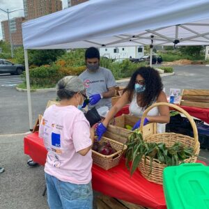 Nous distribuons des produits frais de l'État de New York, des produits secs de base tels que du riz, de l'avoine, des céréales, des œufs et des haricots, ainsi que des repas préparés par des restaurants locaux du Bronx, y compris des repas provenant d'un restaurant dominicain végétalien (oui ! dominicain végétalien) à des organisations communautaires telles que des centres pour personnes âgées, des résidences pour anciens combattants, des résidences pour hommes/femmes et pour familles, des lieux de culte et plusieurs ensembles immobiliers de la NYCHA. Nous organisons des marchés de producteurs gratuits tout au long de l'été et de l'automne à différents endroits, où la communauté peut venir choisir ses produits dans un cadre digne et amusant. Nous avons souvent des chefs locaux invités, des recettes en plusieurs langues et d'autres ressources d'éducation nutritionnelle. Grâce aux relations que nous avons nouées dans les communautés que nous servons et au-delà, nous nous efforçons également de mettre nos résidents en contact avec d'autres ressources et organisations qui existent déjà, pour les aider à répondre à leurs besoins, quels qu'ils soient.